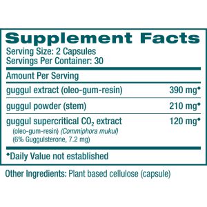 Himalaya Guggul uses a combination of Guggul oleo gum resin extract, Guggul stem powder and Guggul supercritical CO2 oleo gum resin extract, instead of just the simple crushed Guggul you may find on its own in other supplements.*