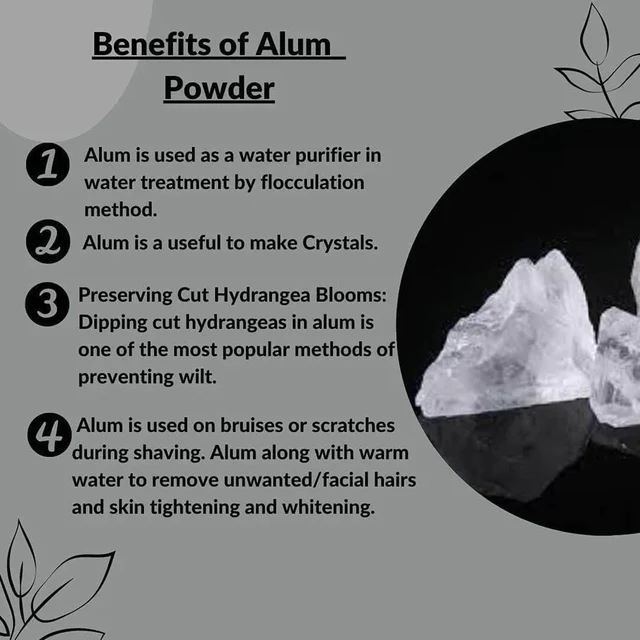Alum powder mixed with wax has been used by women to remove unwanted hair. It is also beneficial for tightening and whitening the skin due to its astringent property. Alum causes cells to shrink and removes excess oil from the skin making it effective for the reduction of acne scars and pigmentation marks.