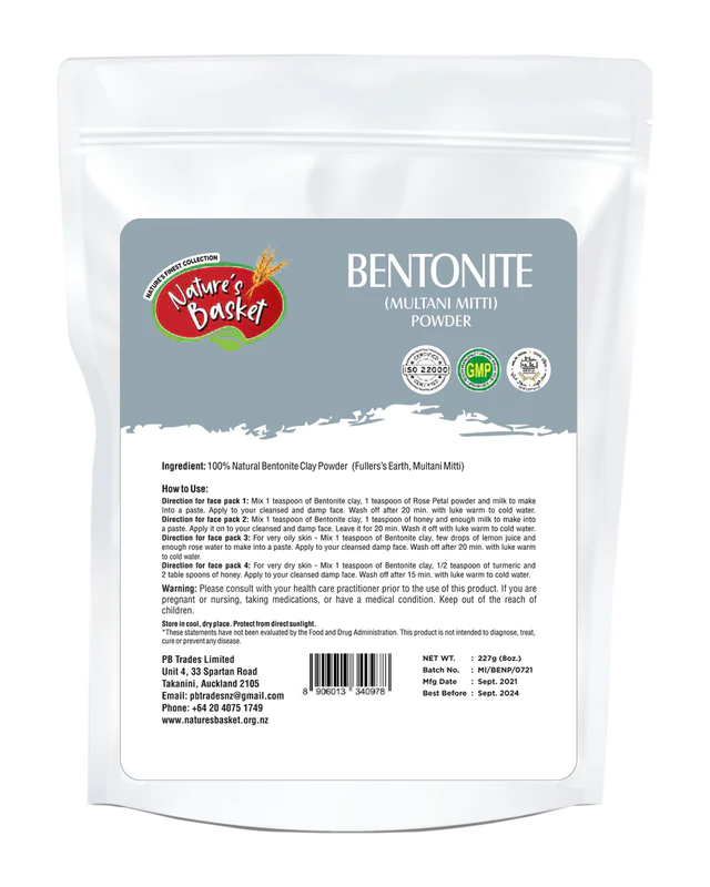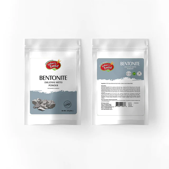 Nature's Basket 100% Pure Bentonite Clay (Multani Mitti) Powder is a pure and product that offers numerous benefits for your skin, hair, and body. Made from high-quality bentonite clay, this powder is perfect for detoxifying your skin and scalp, and boosting overall health.