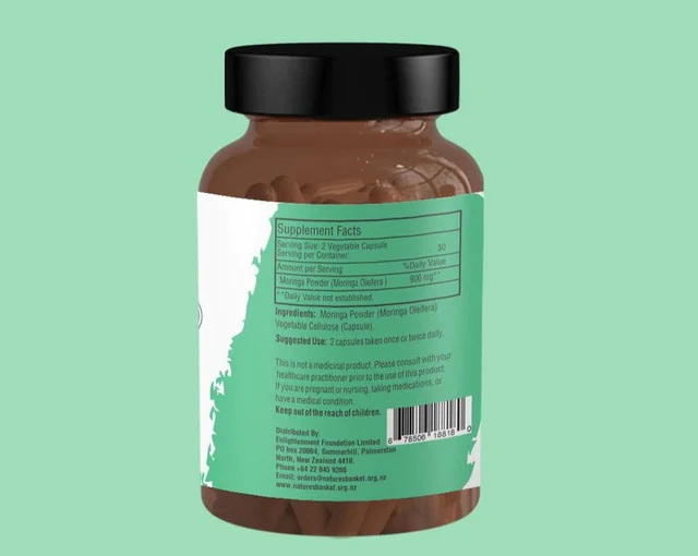 Nature's Basket Moringa Capsules are made from 100% pure moringa leaves that are packed with antioxidants and essential nutrients. This superfood supplement is easy to digest and helps to boost your energy levels, support your immune system, and improve your overall health and well-being. Each capsule contains a potent blend of vitamins, minerals, and antioxidants that provide a natural source of energy and promote healthy digestion.