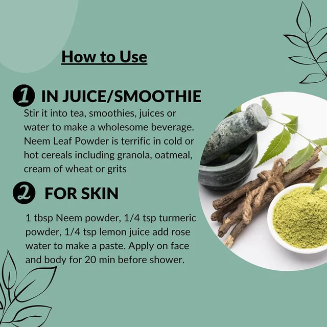 Note: Consult with a healthcare practitioner before using neem powder for internal use if you are pregnant, breastfeeding, or have a medical condition.