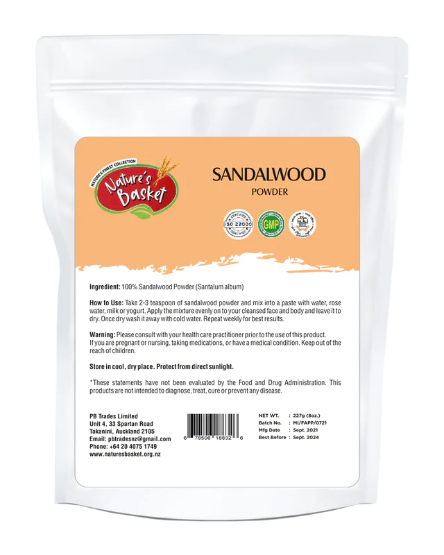 Mix the Nature's Basket sandalwood powder with water or your preferred carrier oil to make a paste. Apply to the skin and leave on for 15-20 minutes before rinsing off.